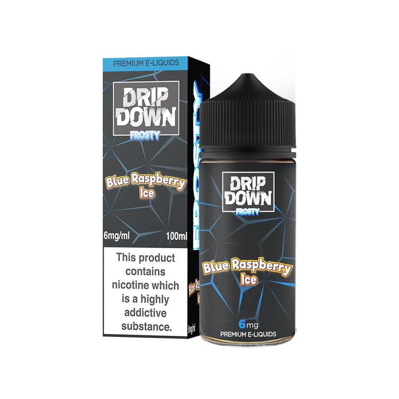 Delve into an exhilarating blend with Drip Down Frosty Blue Raspberry Ice. This captivating fusion unites the bold tang of blue raspberries with a refreshing, icy twist. This vape juice unveils a mesmerizing harmony that delights the palate with its fruity vibrancy and revitalizing chill. Centered around the succulent essence of blue raspberries, widely prized for their intense and mildly tart flavor profile, this concoction is elevated by the infusion of menthol, imparting a refreshing sensation that perfectly complements the fruit’s natural richness.